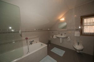 4 Doppelbettzimmer, Wohnküche, 2 Duschen mit WC, Bidet, TV-SAT, Terasse und Balkon mit Blick auf die Dolomiten.
