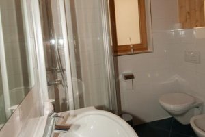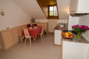 1 Doppelbettzimmer, 1 Wohnzimmer mit Schlafsofa, 1 Wohnküche, 1 Bad mit WC, TV-SAT, kleiner Balkon mit Blick auf die Dolomiten.